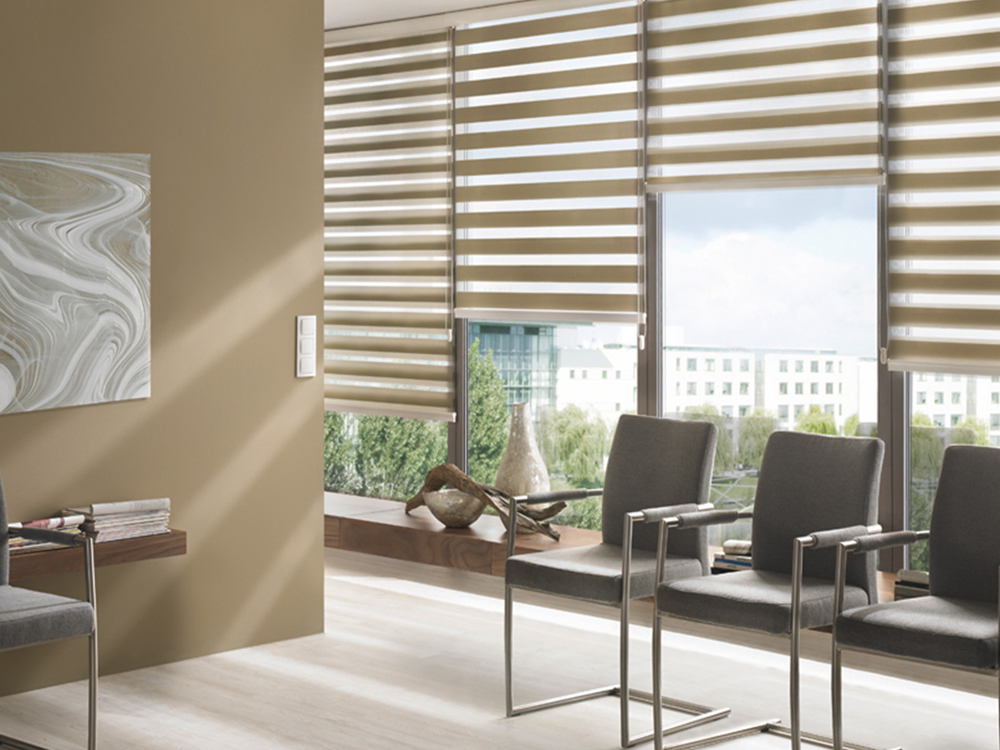 A Cortina Double Vision é uma verdadeira obra de arte na sua janela. O movimento inverso de suas superfícies enquanto uma sobe, a outra desce, fazem com que abrir e fechar a persiana seja uma grata experiência. Elegância, inovação e muito bom gosto são marcas registradas deste modelo.