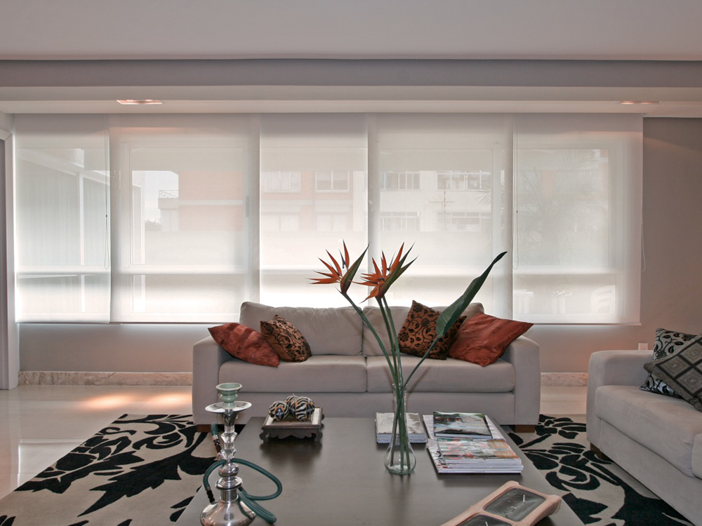 Elegante e simples, a cortina Rolô chama atenção, por causar um efeito clean. De fácil manuseio e limpeza. Este modelo que alia tecnologia e inovação, pode ser confeccionado nas opções translúcidas e blackout, motorizadas ou não. A cortina Rolô atende com maestria a cobertura de janelas com grandes áreas de vidros. Suas linhas retas e discretas ajustam-se perfeitamente á arquitetura moderna e á decoração interna. Amplas coleções de telas solares proporcionam o nível de escurecimento ideal e o máximo controle solar, sem obstruir a vista.